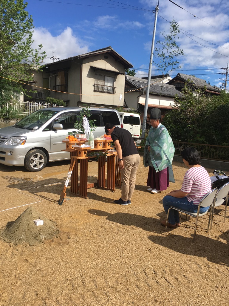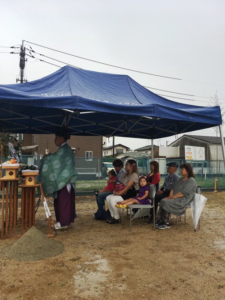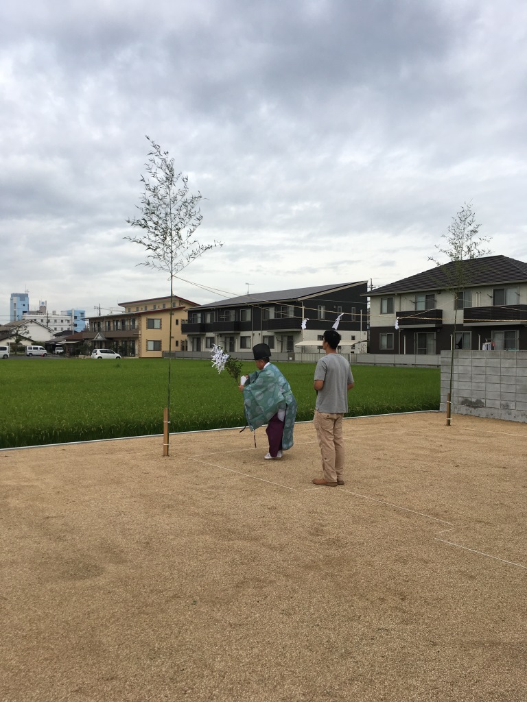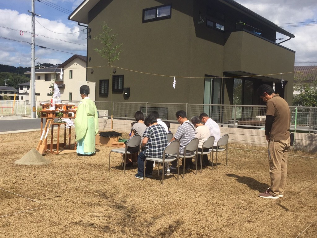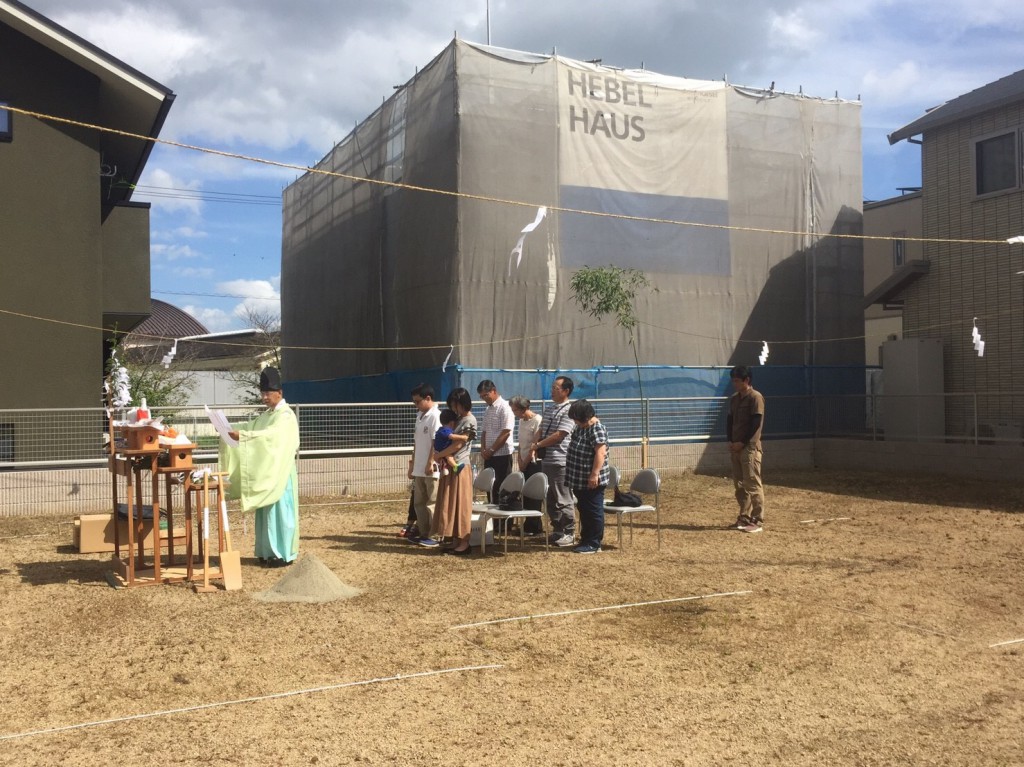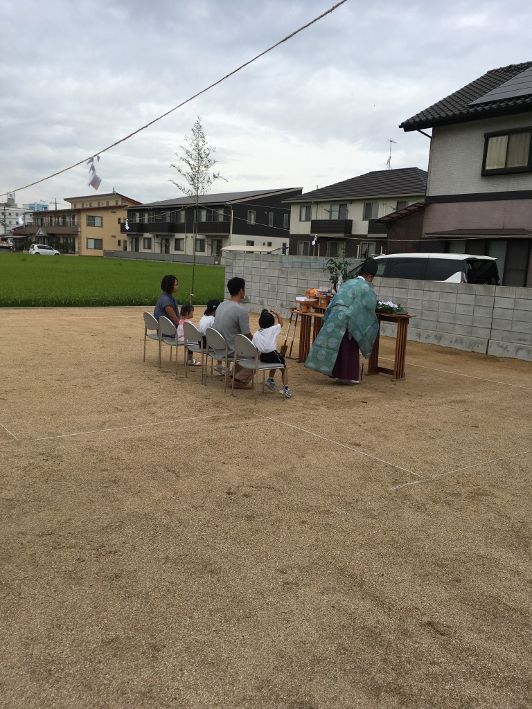 お家の建築などの工事をする時、関係者が集まって土地の神を祀り、工事の無事進行を祈願する祭儀。