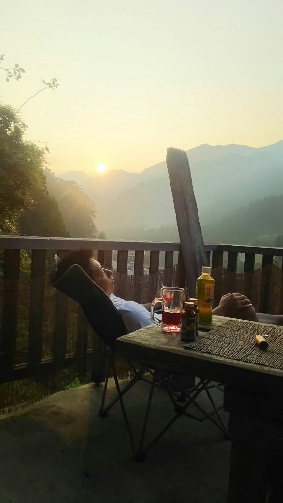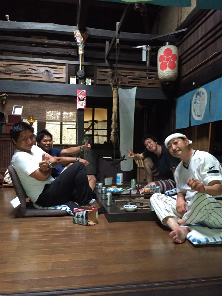 夜中は囲炉裏でするめをあぶりながら日本酒飲んで