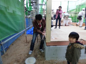 お清めの後、乾杯も終わり、N様にドリフトピンを打っていただいて作業開始です。
