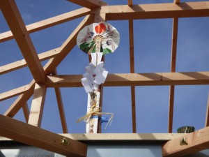 作業も順調に進み棟も建ち上がりました。お札もしっかりと取り付け完了!!