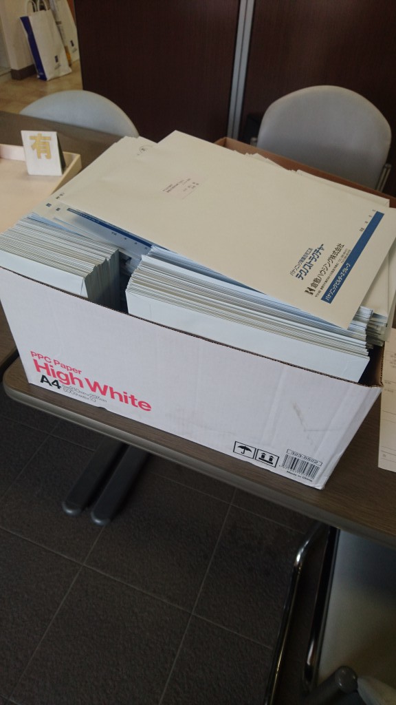 なので、昨日は郵送の準備を色々な方にお手伝いしていいただきました