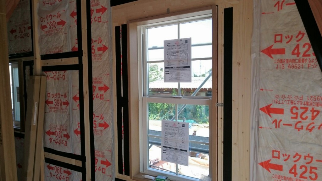 おしゃれな格子入りの窓を設置してますので出来上がりの内観、外観ともに楽しみです
