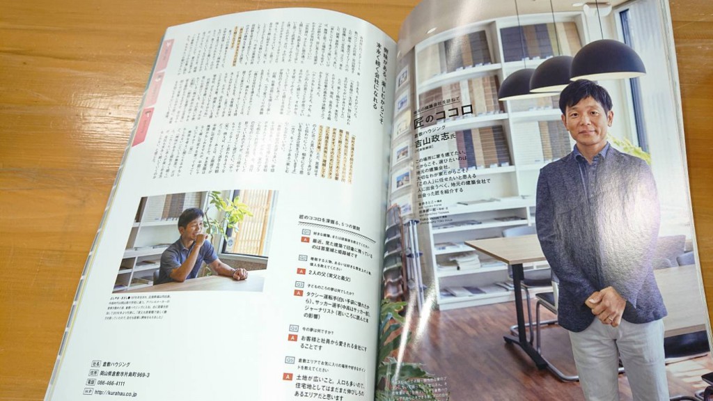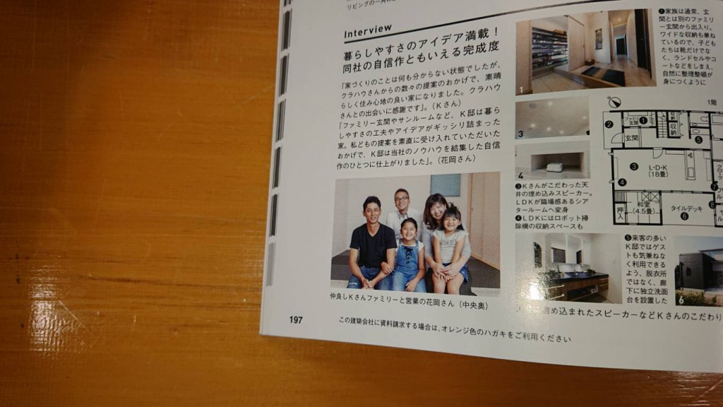 その他 スーモさん すっかり秋らしくなってきましたね そろそろホッカイロが必要になってきた寒がりの花岡です。皆さんも体調に気をつけてくださいね 以前のブログでご紹介させていただいたK様邸がSUUMOさんに掲載されました。事務所のこちらに置いています。 K様邸の内容はぜひ手に取って見ていただけたら嬉しいです パラパラめくっていると あらら 我らの社長が 良いこと言ってますね。流石です あれ。僕も 改めて色々思い出して良いお酒が飲めた花岡でした
