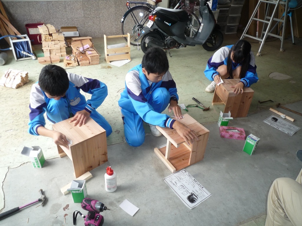 事務所に戻ってからは、イスを作ってみんな家に持って帰りました。