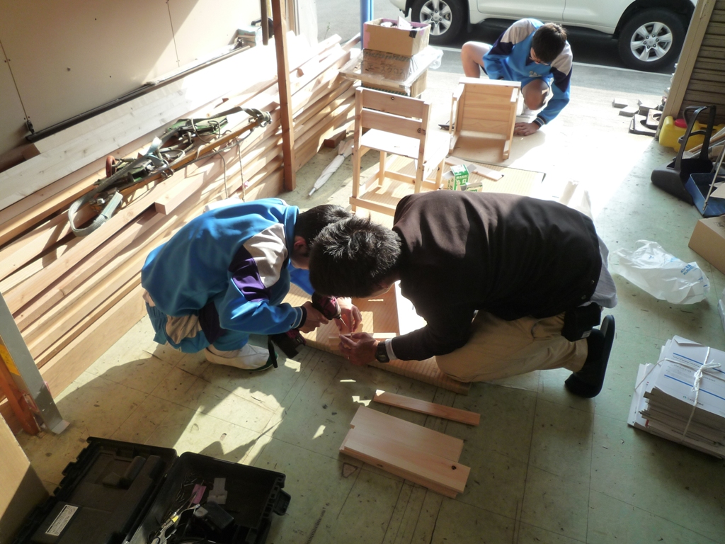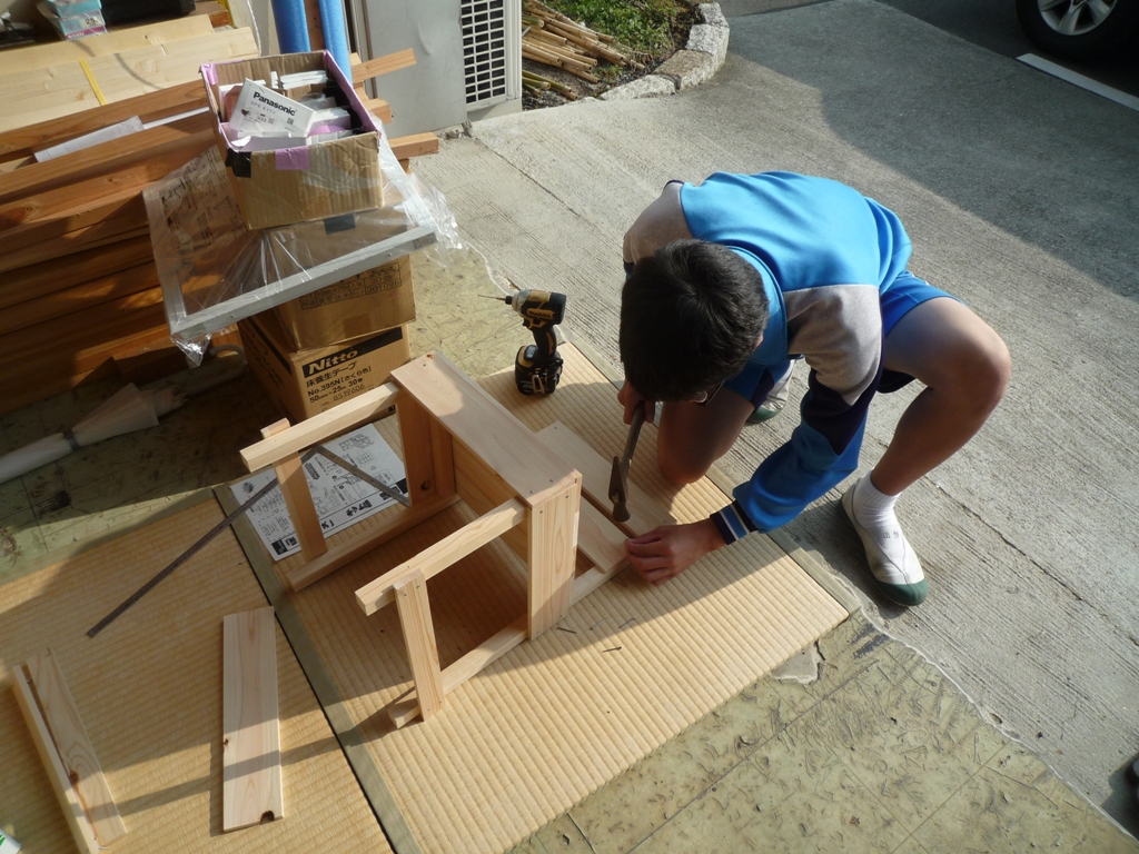 現場レポート チャレンジワーク こんにちは 倉敷ハウジング 福武です。 先日チャレンジワークに第一中学校の生徒がきました。一日目はCAD体験と現場見学、二日目はCAD体験と木工教室を体験してもらいました。 二日目の木工教室の写真ですが真剣に取り組んでました。 お昼から作り始めて ついに完成!!記念にパシャリ♪ 職場体験が将来に役立てばいいなと思う今日この頃(笑)