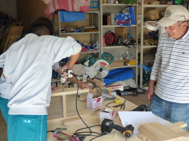 日々のあれこれ チャレンジワーク こんばんは 倉敷ハウジング 福武です。 先日 福田中学校から二人体験学習にきました。 パソコンでCADを体験して、 足場に上りゆっくり建物を一周しました。 現場でのこぎり・釘打ち体験もして 最終日には棟梁と一緒に本棚を造りました。 土台・柱・筋違い・テクノビーム、部材の場所をまだ覚えてくれているかなー? 福田中のお二人さん 三日間おつかれさまでしたー(^O^)/