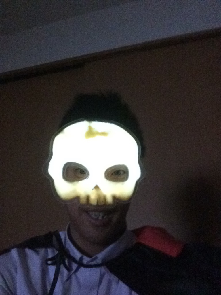 日々のあれこれ ハロウィン(*^。^*) こんばんは、倉敷ハウジング 千田です\(^o^)/ 今日は、先月のハロウィンの事を書きま~す 今年もハロウィンの仮装をしましたでもどこに行くわけでもなく家の中で楽しみました♪ 僕の仮装は『ガイコツの光るお面とマント』奥さんの仮装は『かぼちゃのオーバーオール』を来てもらいました(^○^) 暗くしたらこんな感じです 暗くなると結構気持ち悪い感じです(T_T) 今年もひそかにハロウィンを楽しんだ千田でした(^^)/~~~