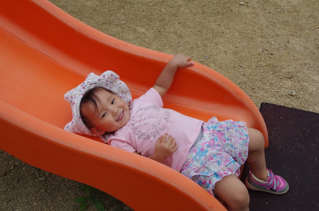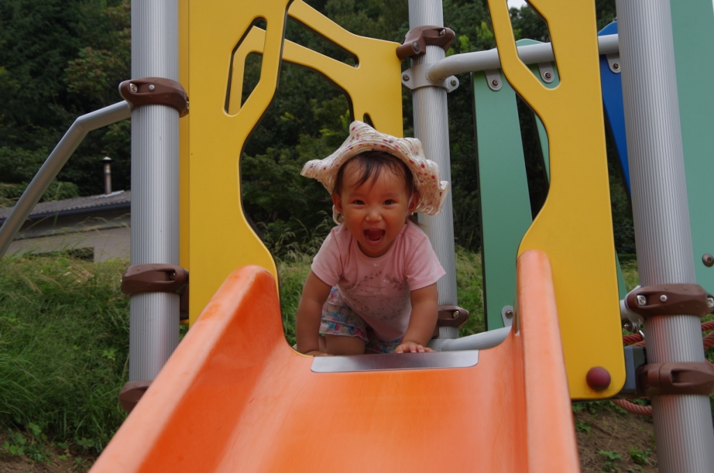 小さい子でも一人で滑れる滑り台にやってきました(^u^)