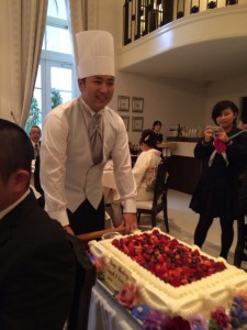 ケーキカット!お洒落なケーキと美女と野獣(笑)