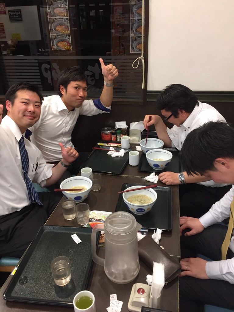 渡辺君(右手前)が二杯目でに笑し出しました(笑)