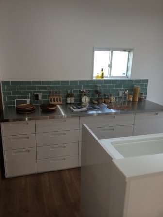 カップボード天板のステンレスとタイルの相性がGOODです。(*^_^*)