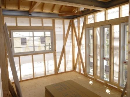 内部は、スジカイ・サッシの取付・防蟻工事(シロアリ予防)が終わってます。