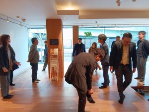 靴を脱いで歩くことで、仕上げ材ごとの 足触りの違い を比較でき、みんなでさまざまな木を体験しました。