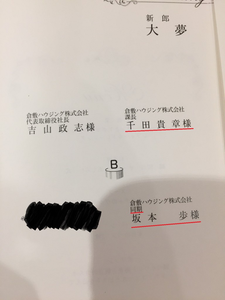 先日、ケイエイチ出向中の渡邊君の結婚式に参列させて