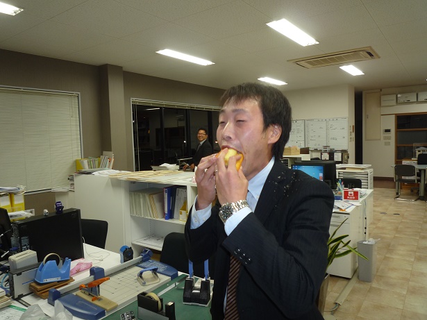 日々のあれこれ 駄菓子が・・・ こんばんは倉敷ハウジング の福武です。 駄菓子の差し入れを大橋君から頂きました。 席をはずしてる間に、ハウジングの出川哲郎こと小川君が、お菓子の匂いに誘われてうまい棒を盗み食いしようとしてました。 発見したとたん うまい棒を4本一気食いしました。 せっかくの差し入れを出川哲郎こと小川君に食べられて ショックでした