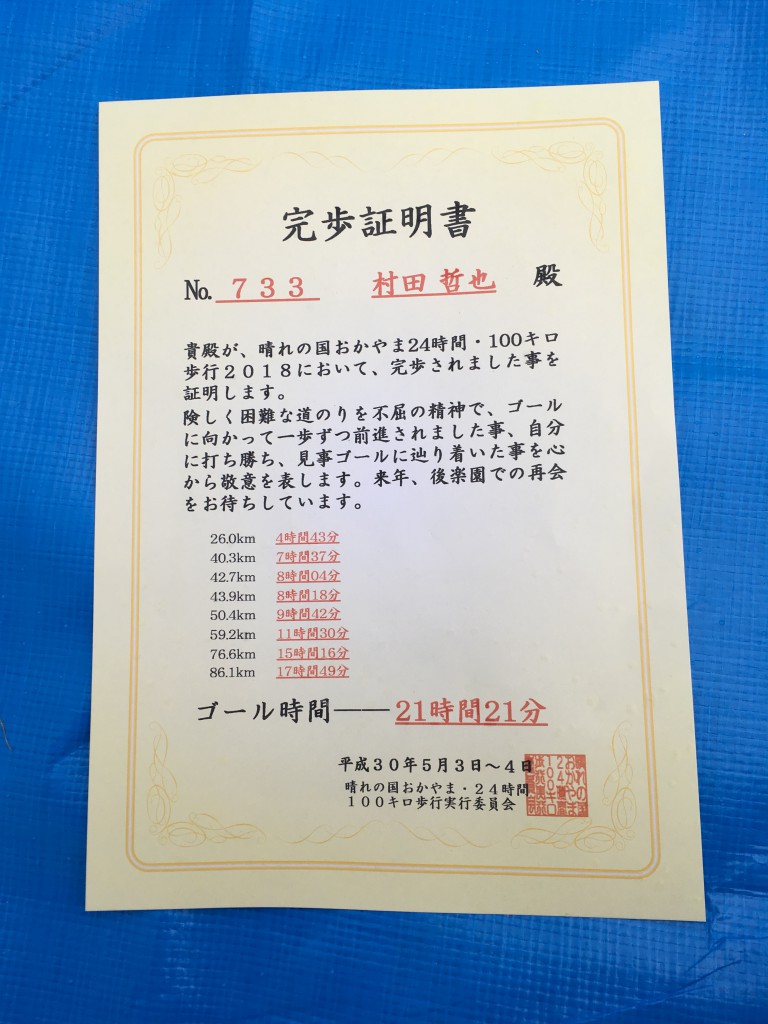 100キロ無事に完歩した