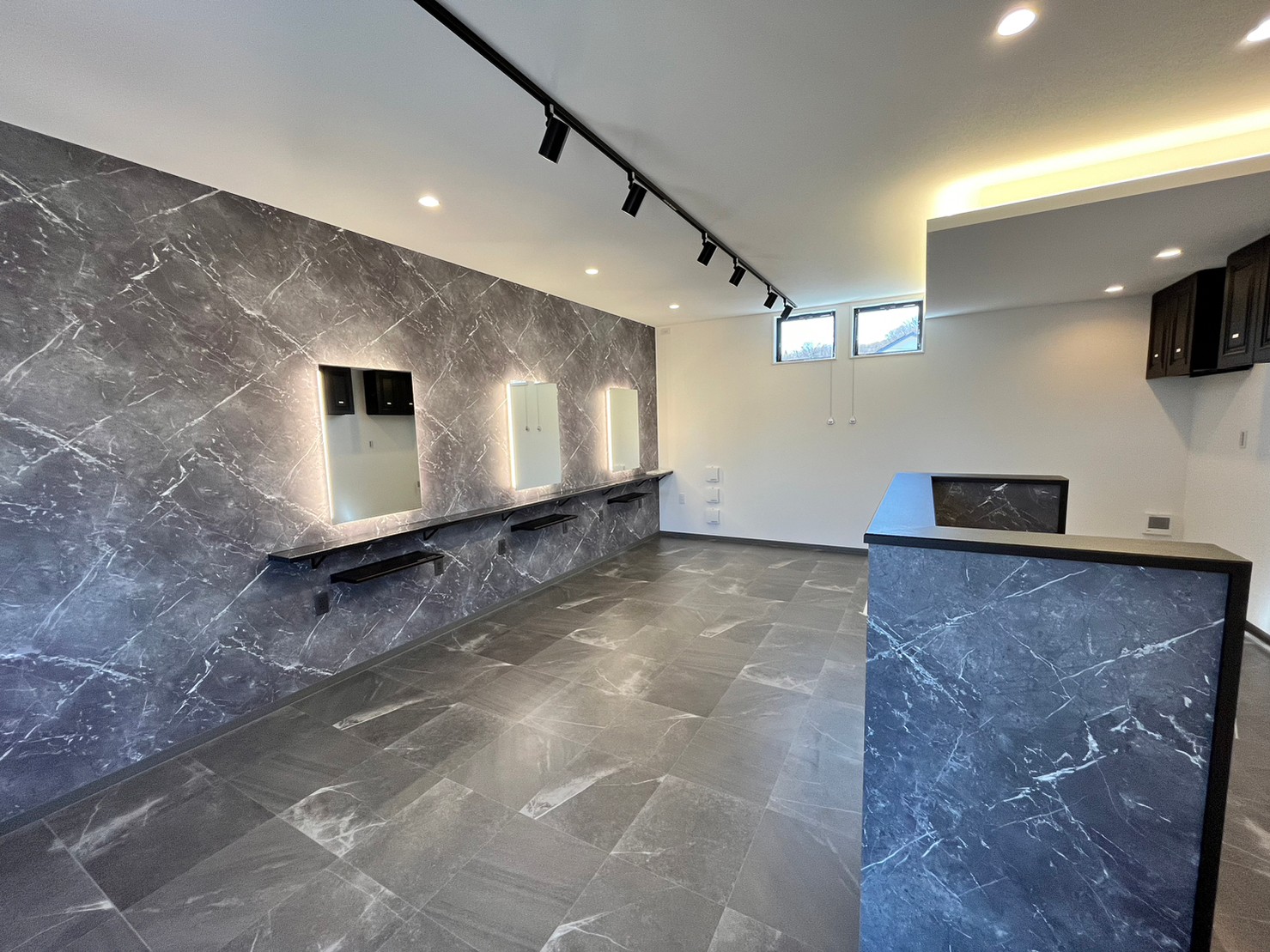 - グレーを基調にしたかっこいい店舗併用住宅。スタイリッシュグレーハウス。なかなか見る機会のない岡山市北区の美容院とお家の3SLDK店舗併用住宅の見学会にぜひ、ご来場ください。
