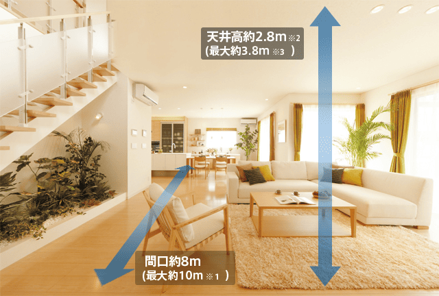 開放感のある「天井高・間口の広さ」