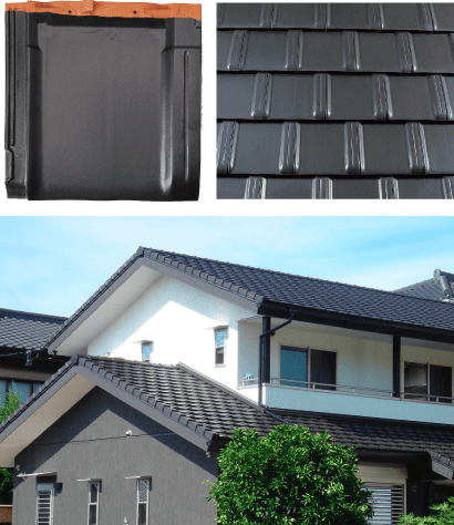自然素材である粘土とゆう薬を高温(1130℃)で焼き締めた、表面がガラス質の被膜で覆われた陶器質の屋根材です。変色や変質が起こりにくく、時間が経過しても美しい外観を保つことができます。セメント系屋根材のように、表面が塗料による着色でないため、塗り替えの必要はありません。何十年も、雨風、暑さ、寒さにさらされても劣化せず、保証も60年となっています。