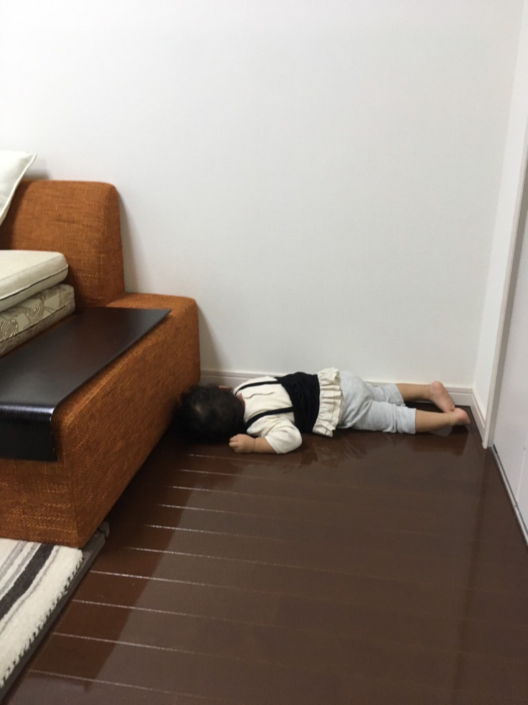仮装に疲れて、床でパタッと寝てしまった。娘さまです。