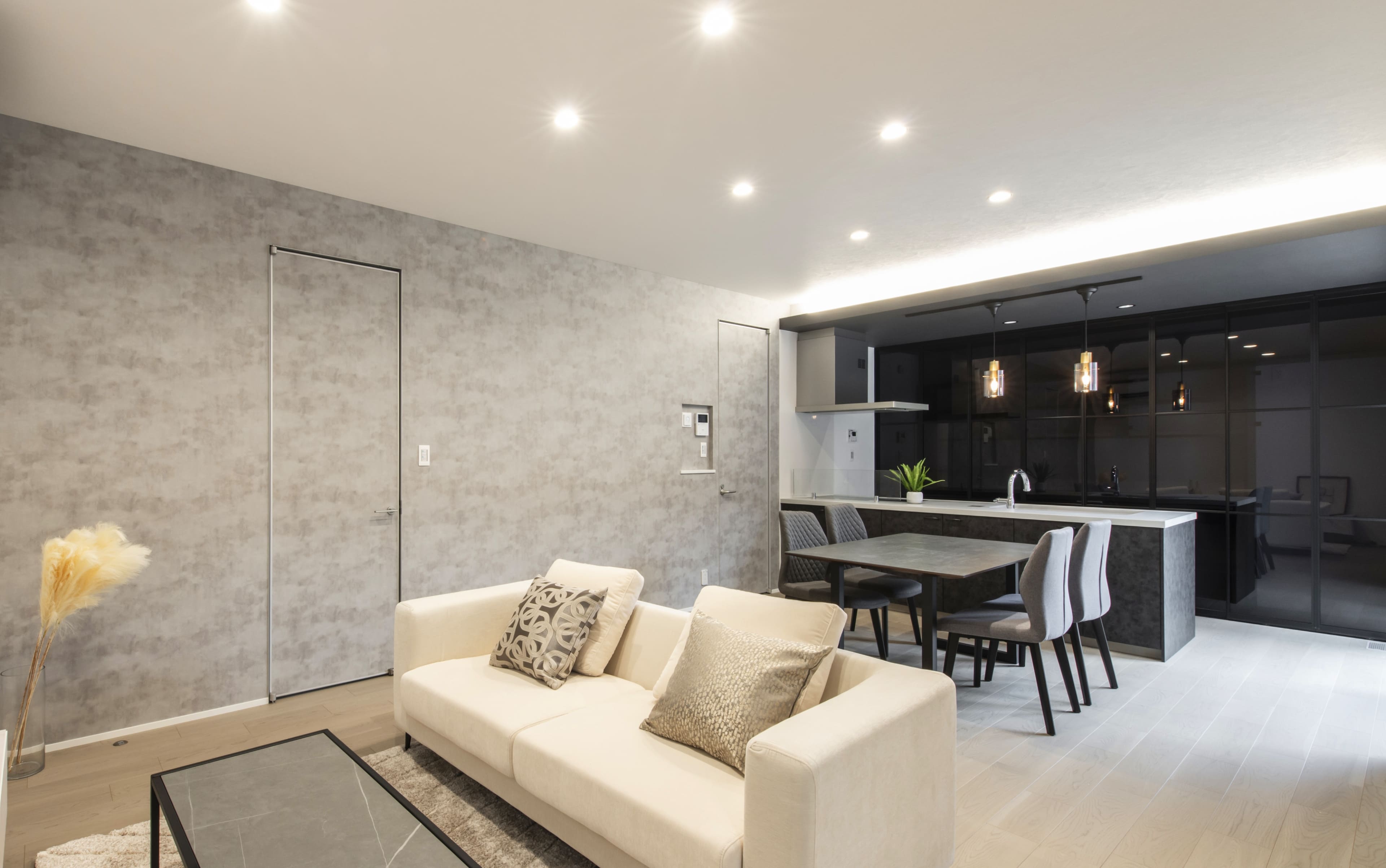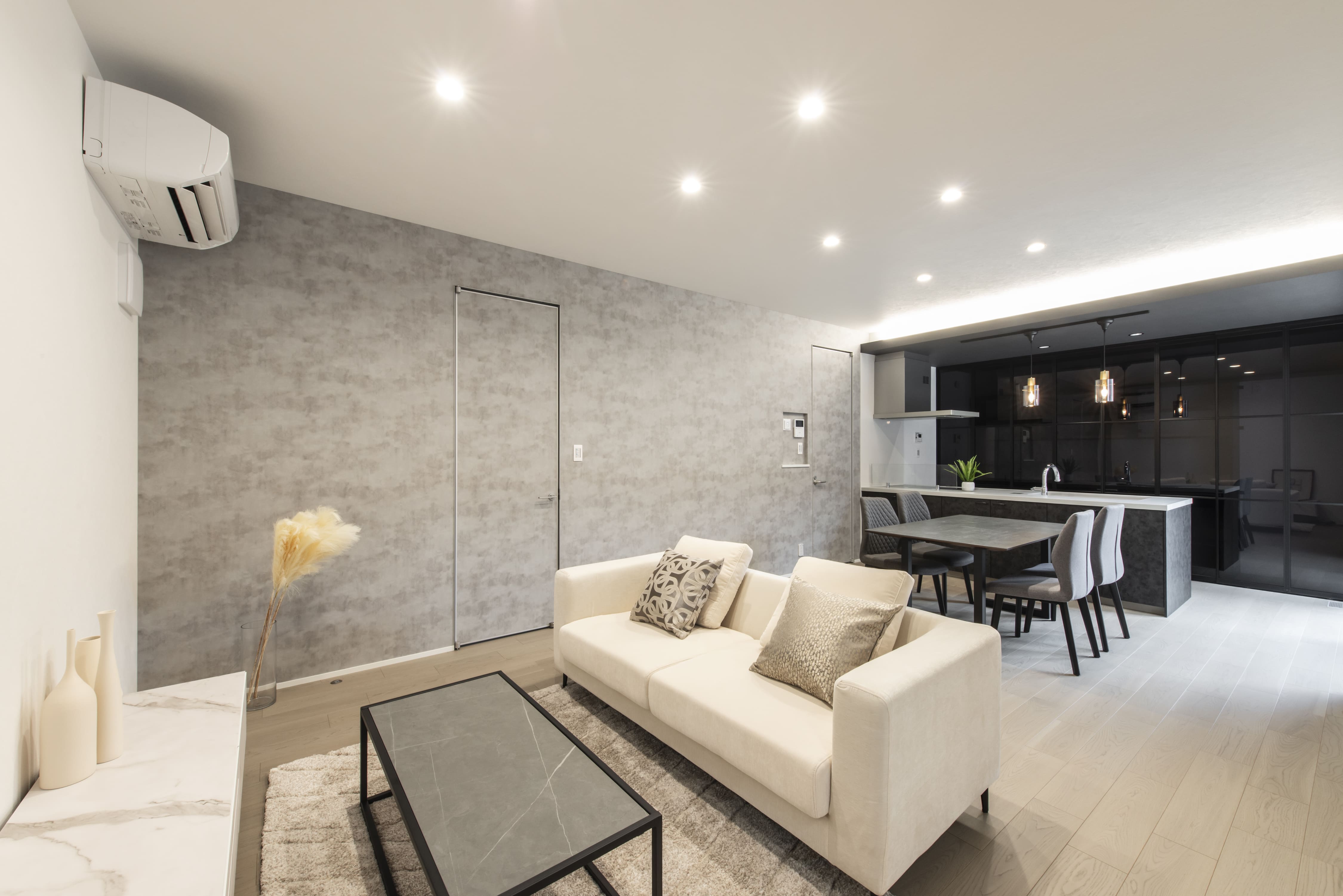 落ち着いた色合いのリビングは、シンプルながらも上質で豊かさを感じられます。