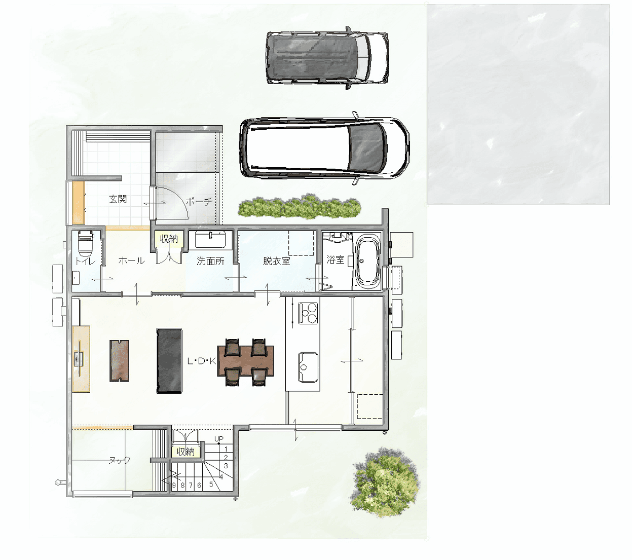 南側のヌックは読書や趣味を楽しむ特別な場所。快適な家事動線で家族想いの暮らしを実現します。