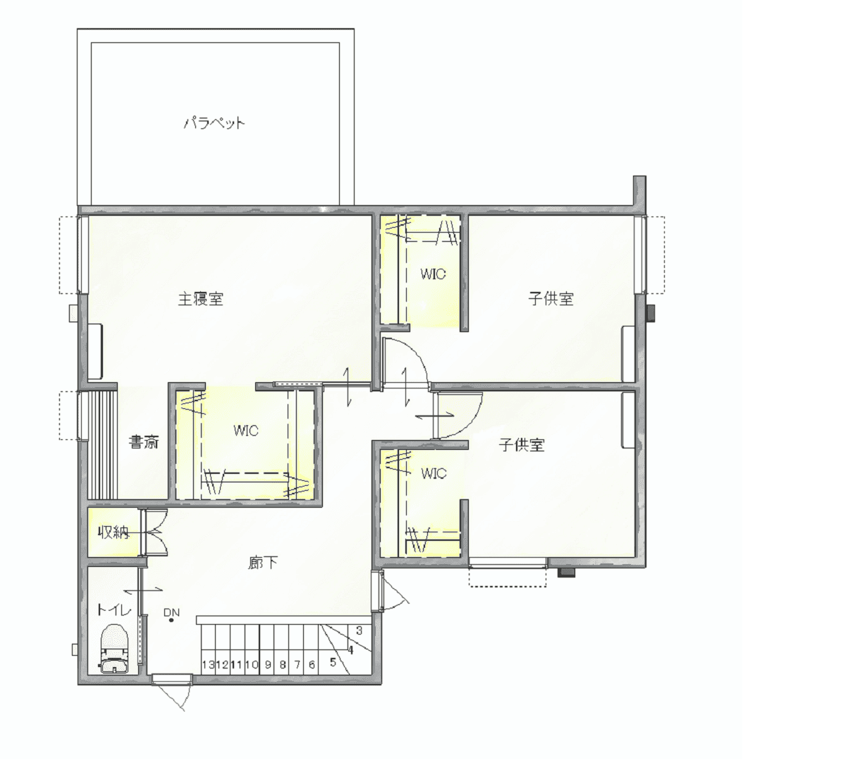 二階の各お部屋には、ウォーキングクローゼットを完備。