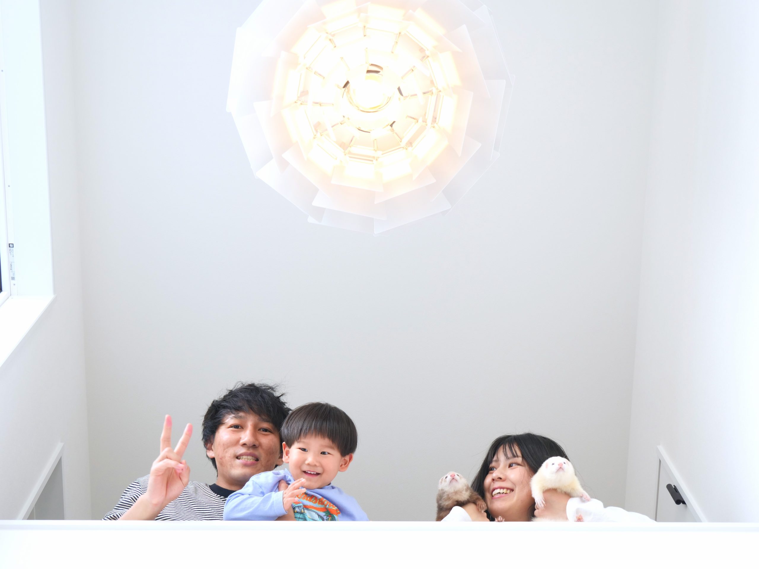 明るく広い空間や回遊動線、家事のしやすさにこだわって家を建てました。玄関に設けた吹抜けは特にお気に入りで、開放感があり気持ちのいい空間になっています。快適で満足のいく住まいができました。