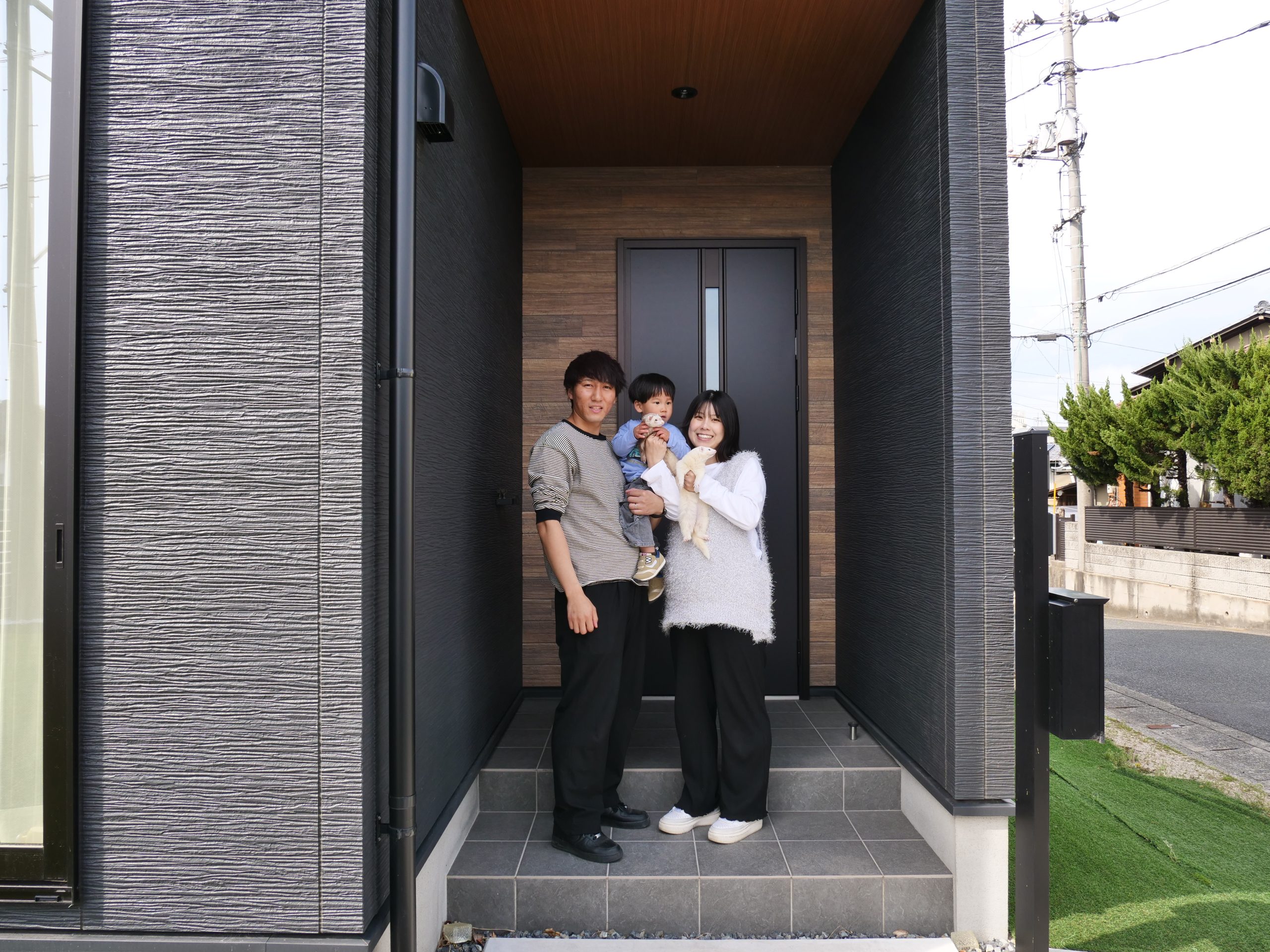 外観デザインは夫婦ともに「黒」にしたいと考えていました。塗り壁も魅力的でしたが、黒い外壁は汚れが目立ちにくく、メンテナンスも楽な点が決め手となりました。シンプルで落ち着いた印象がありながらも、飽きがこないカラーで、長く愛着を持って暮らせるデザインになったと感じています。