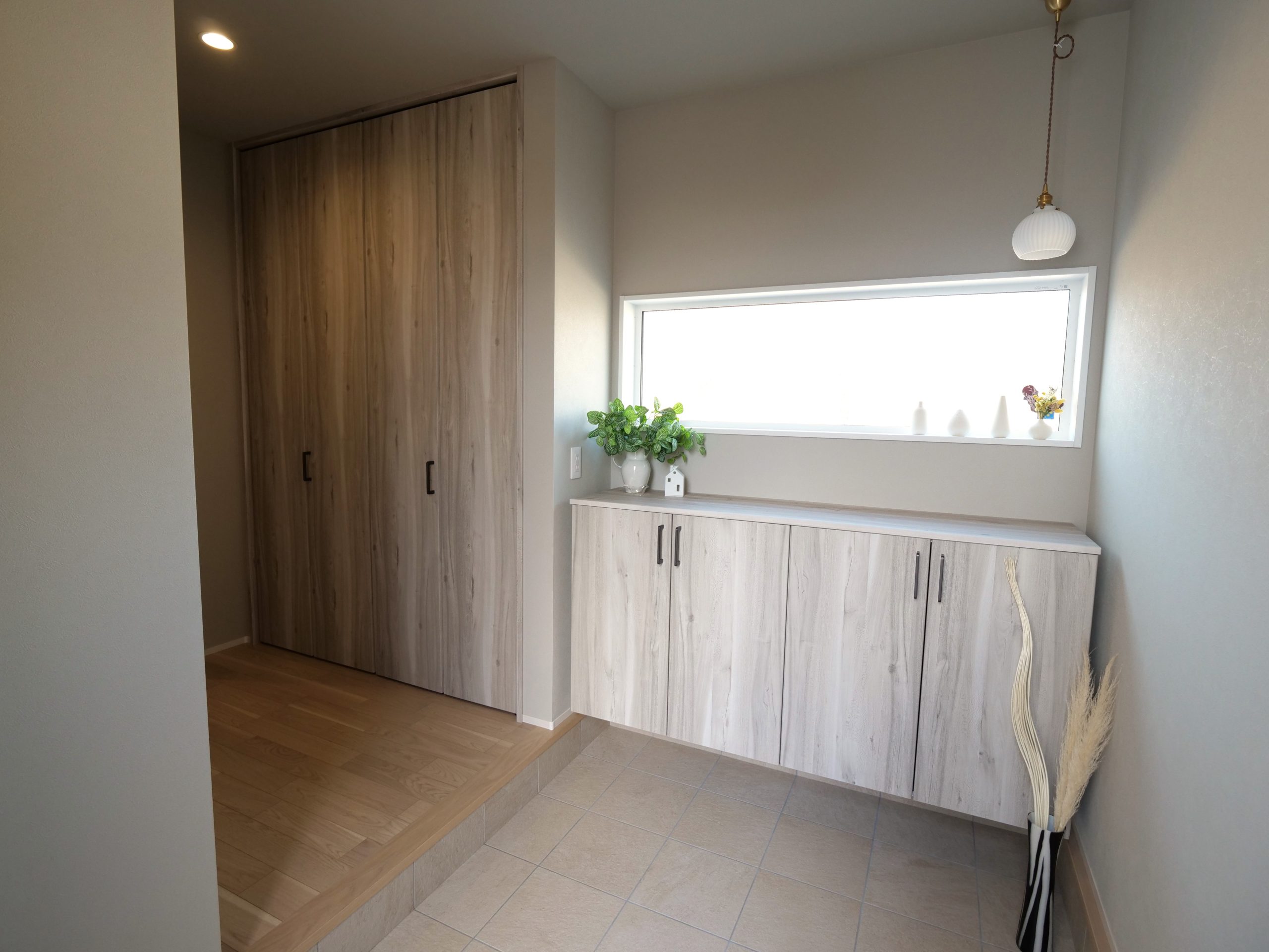 「中庭のあるロフト付き平屋。」光あふれる中庭を中心に、心地よく広がる24帖のLDK。LDKのどこからでも中庭が望めて、空間も広く感じる事が出来ます。ロフト空間と天井高を下げた隠れ家部屋空間が暮らしに遊び心をプラスし、平屋の快適さと開放感を両立しました。主寝室にはウォークインクローゼットを完備し、洋室にもそれぞれ収納付き。キッチンから洗面・脱衣室へと続くスムーズな家事動線で、日々の暮らしも快適に。家族が自然と集まり、心地よい時間を過ごせる住まいとなっています。